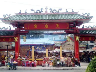 Chùa Bà tọa lạc tại số 4 Nguyễn Du, thị xã Thủ Dầu Một, Bình Dương. Chùa Bà có tên chính là Thiên Hậu Cung, là nơi thờ tự và tín ngưỡng của người Hoa ở Việt Nam. Trong chùa Bà thờ các vị thần thánh như Thổ công, Môn quan, Thiên Hậu thánh mẫu, Ngũ Hành nương nương (năm vị thánh mẫu hành: Kim, Mộc, Thủy, Hỏa, Thổ), vợ chồng Bổn Đầu Công (một vị tướng Trung Hoa).